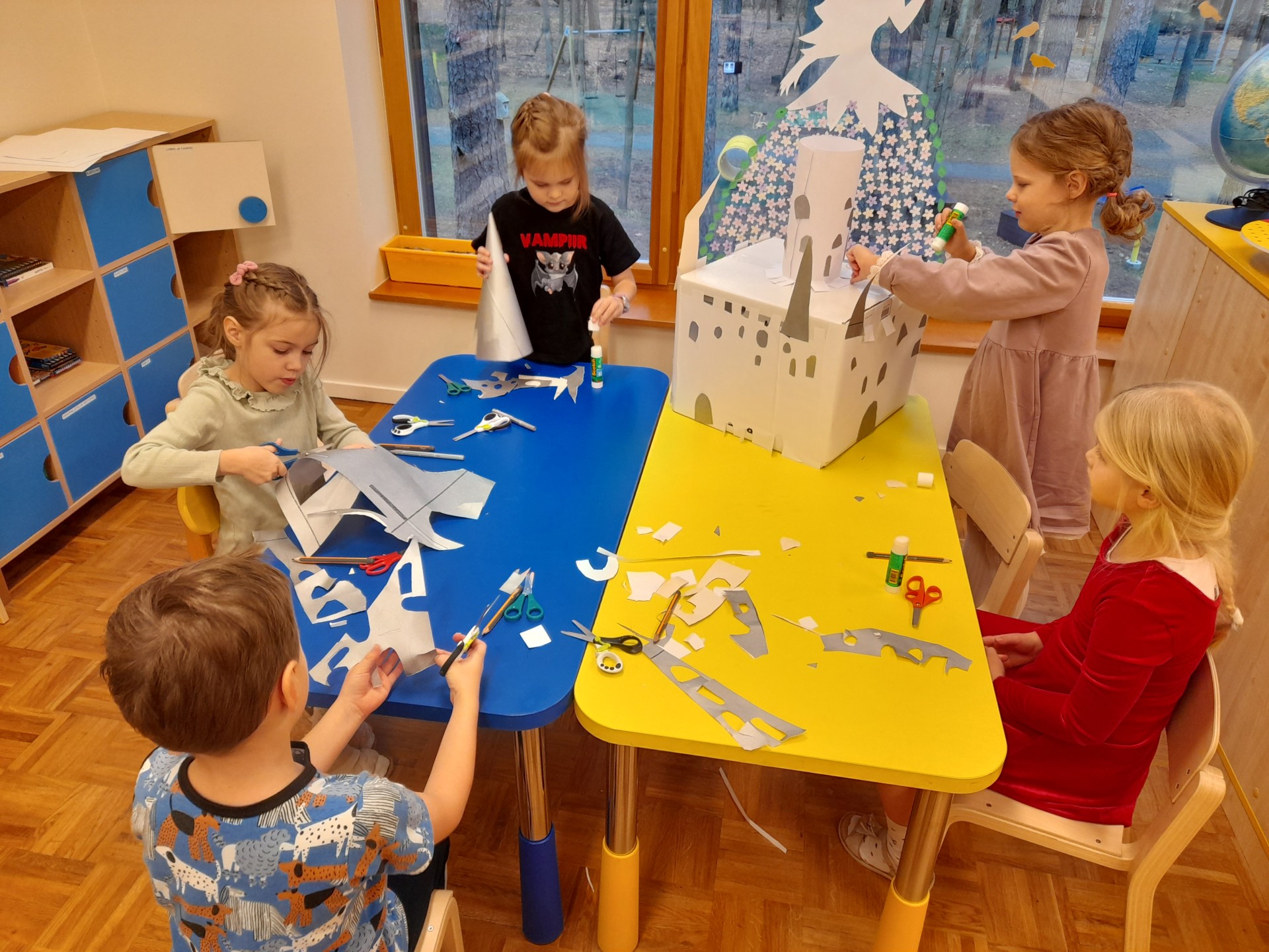 Lepatriinud õppisid jõulupeaoks etenduse "Lumekuninganna" ja meisterdasid taaskasutatavatest materjalidest dekoratsiooniks lumekuninganna lossi.